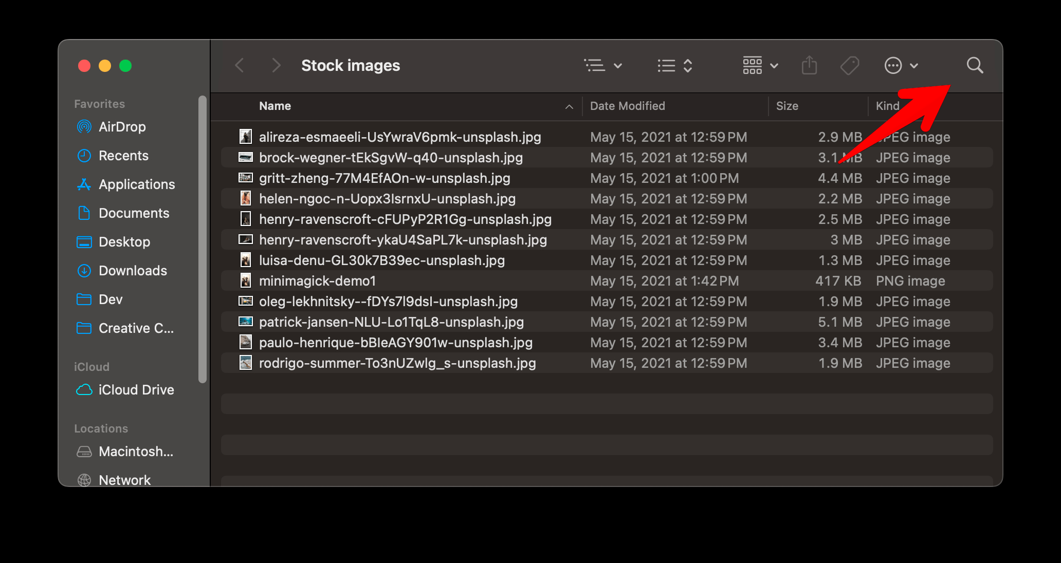 La primera funcionalidad nueva es Folders. Entra al folder donde tienes las fotos de tu cliente y dale click en la lupa de busqueda.